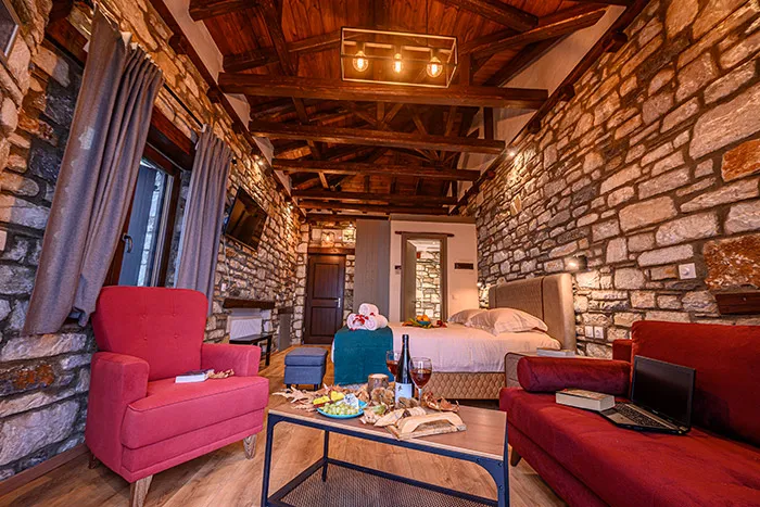 Ανακαλύψτε τις σουίτες μας σε ένα καταπράσινο περιβάλλον με θέα τη θάλλασα.